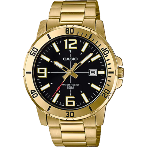 Casio Gold Stainless Steel Black Dial Quartz Watch for Gents - MTP-VD01G-1BVUDF(AG)