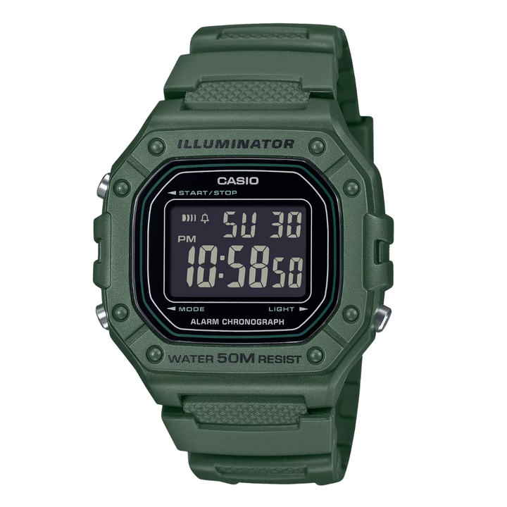 Add to WishlistCasio Green Rubber Black Dial Quartz Watch for Gents - W-218H-3BVDF