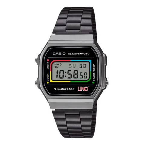 Add to WishlistCasio Grey Stainless Steel Black Dial Quartz Watch for Gents - A-168WEUC-1ADR