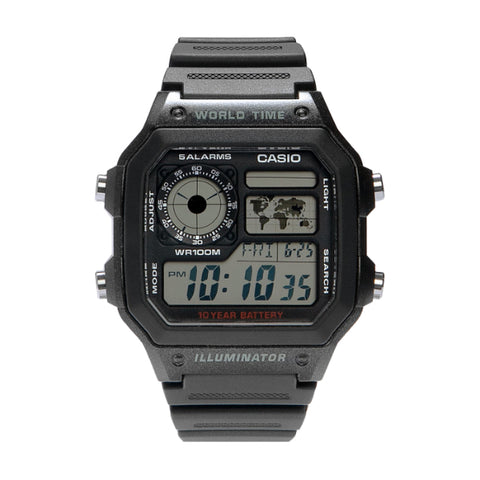 Add to WishlistCasio Illuminator Black Silicone Strap Black Dial Quartz Watch for Gents - CASIO AE-1200WH-1AVDF