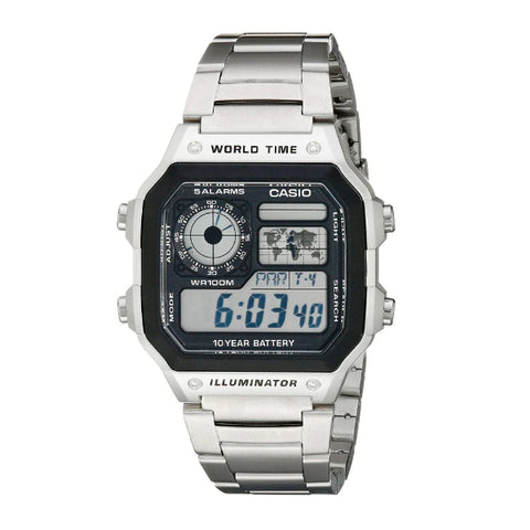 Casio Illuminator Silver Stainless Steel Silver Dial Quartz Watch for Gents - CASIO AE-1200WHD-1AVDF