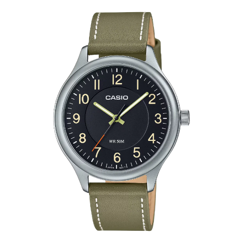 Add to WishlistCasio Olive Green Leather Strap Black Dial Quartz Watch for Gents - MTP-B160L-1B2VDF