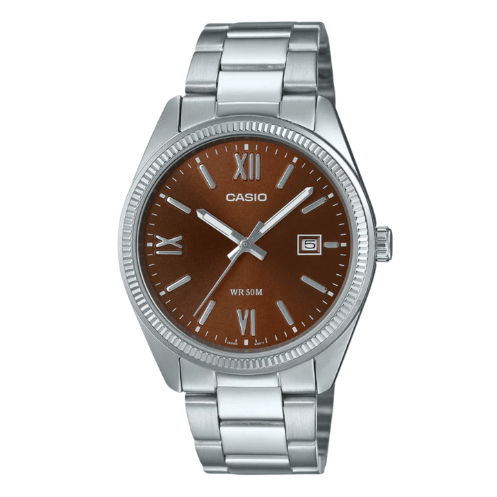 Casio Silver Ion-Plated Stainless Steel Brown Dial Quartz Watch for Men – MTP-1302DD-5AVDF