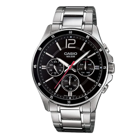 Casio Silver Stainless Steel Black Dial Chronograph Quartz Watch for Gents - MTP-1374D-1AVDF(AG)