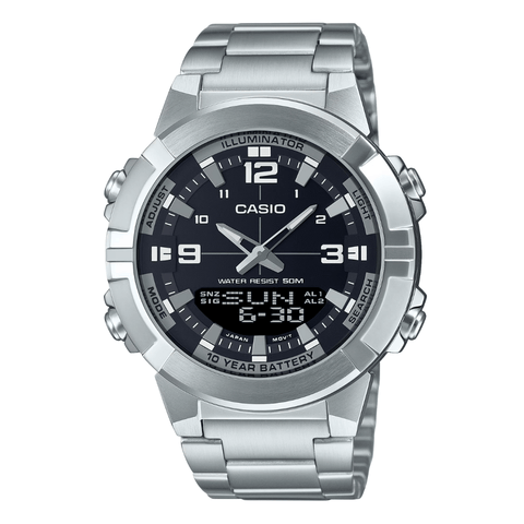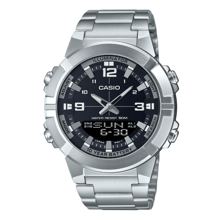Casio Silver Stainless Steel Black Dial Quartz Watch for Gents - AMW-870D-1AVDF