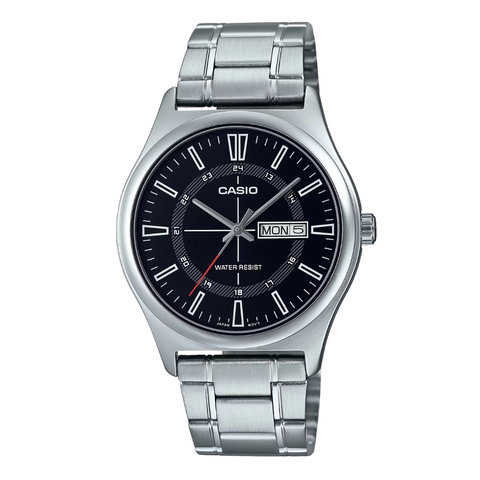 Casio Silver Stainless Steel Black Dial Quartz Watch for Gents - CASIO MTP-V006D-1CUDF