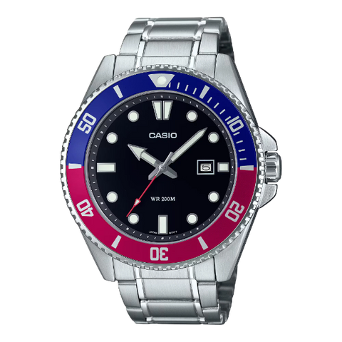 Casio Silver Stainless Steel Black Dial Quartz Watch for Gents - MDV-107D-1A3VDF