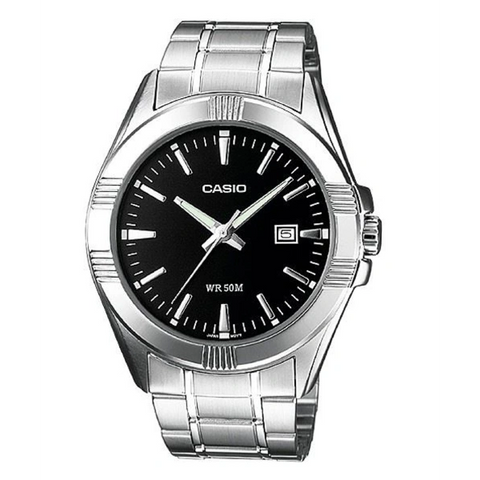 Casio Silver Stainless Steel Black Dial Quartz Watch for Gents - MTP-1308D-1AVDF