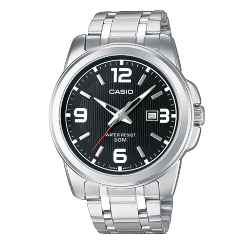 Casio Silver Stainless Steel Black Dial Quartz Watch for Gents - MTP-1314D-1AVDF (AG)