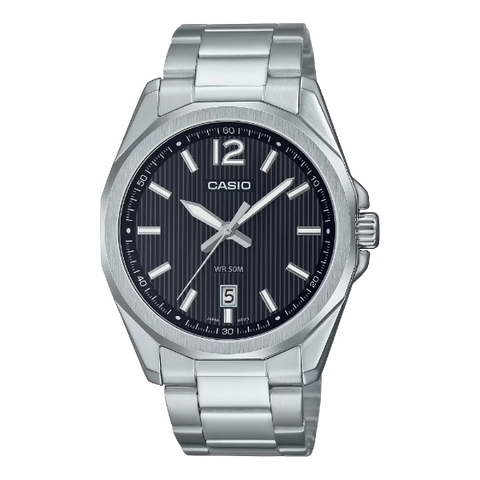 Casio Silver Stainless Steel Black Dial Quartz Watch for Gents - MTP-E725D-1AVDF