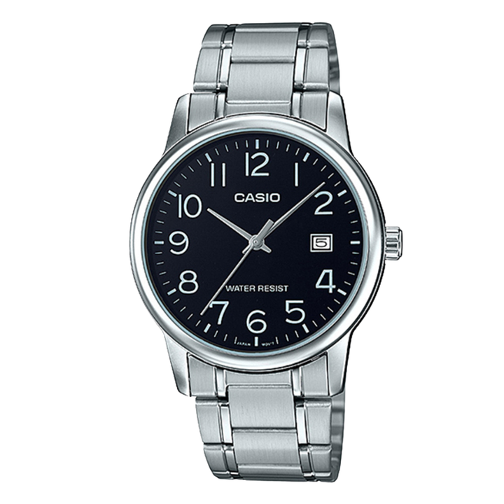 Casio Silver Stainless Steel Black Dial Quartz Watch for Gents - MTP-V002D-1BUDF