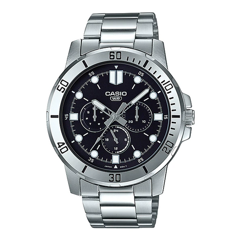 Add to WishlistCasio Silver Stainless Steel Black Dial Quartz Watch for Gents - MTP-VD300D-1EUDF