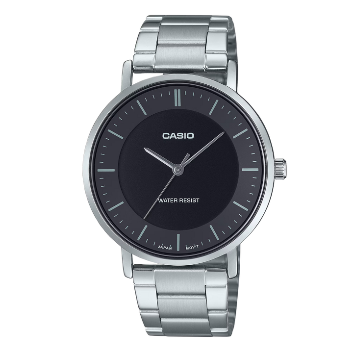 Casio Silver Stainless Steel Black Dial Quartz Watch for Gents - MTP-VT04D-1EDF