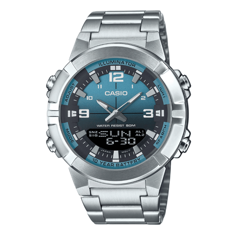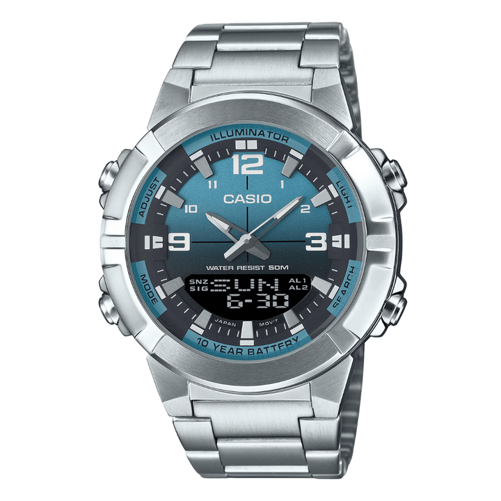 Casio Silver Stainless Steel Blue Dial Quartz Watch for Gents - AMW-870DA-2A2VDF