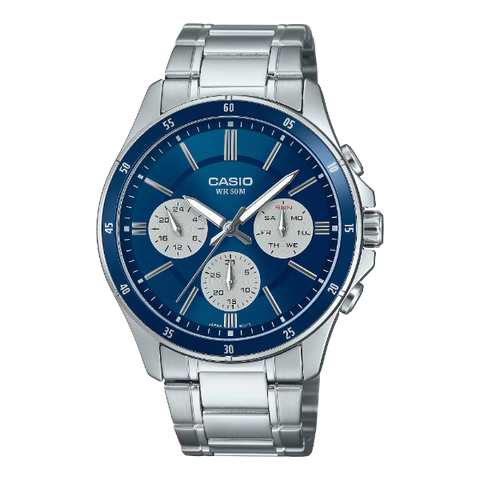 Casio Silver Stainless Steel Blue Dial Quartz Watch for Gents - MTP-1374D-2A3VDF