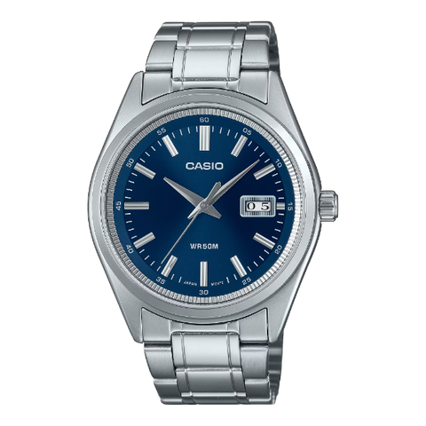 Casio Silver Stainless Steel Blue Dial Quartz Watch for Gents - MTP-B180D-2AVDF