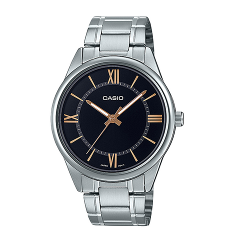 Casio Silver Stainless Steel Bracelet Black Analog Quartz Watch for Men – MTP-V005D-1B5UDF