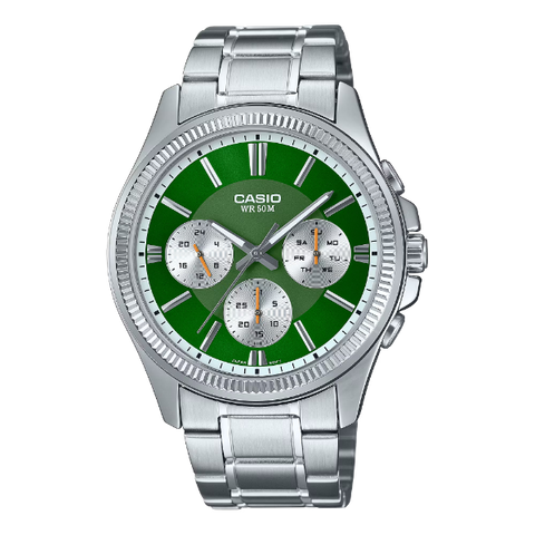 Casio Silver Stainless Steel Green Dial Quartz Watch for Gents - MTP-1375D-3AVDF