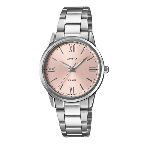 Casio Silver Stainless Steel Rose Dial Quartz Watch for Ladies - CASIO LTP-1303DD-2AVDF