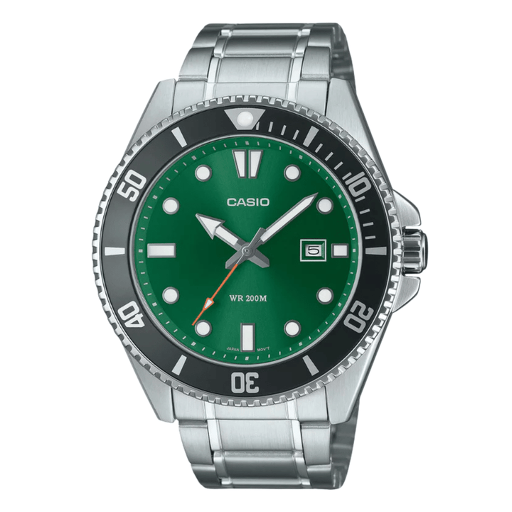 Casio Stainless Steel Green Dial Quartz Watch for Men – MDV‑107D‑3A2VDF