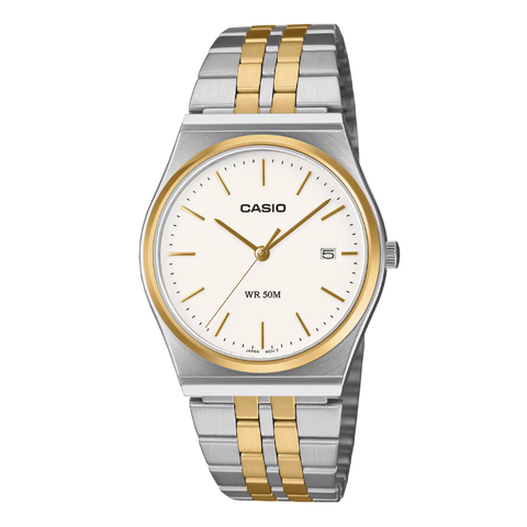 Casio Two tone Stainless Steel Cream Dial Quartz Watch for Gents - CASIO MTP-B145SG-1AVDF