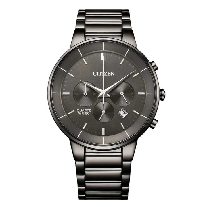 Citizen Black Ion-Plated Stainless Steel Bracelet Grey Analog Chronograph Quartz Watch for Men – AN8227-53H