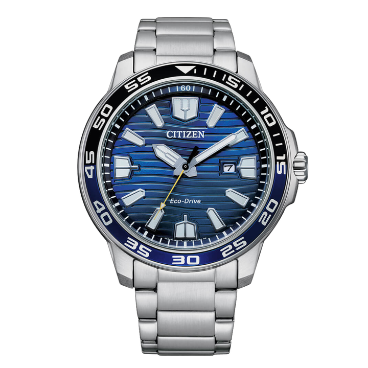 Citizen Eco-Drive Silver Stainless Steel Blue Dial Quartz Watch for Gents - AW1525-81L