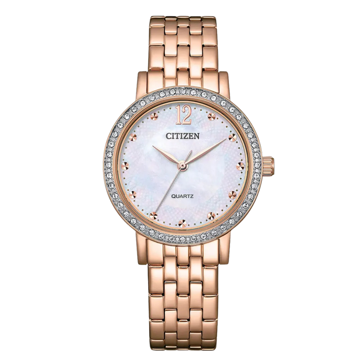 Citizen Gold Stainless Steel White Dial Quartz Watch for Ladies - EL3108-53D