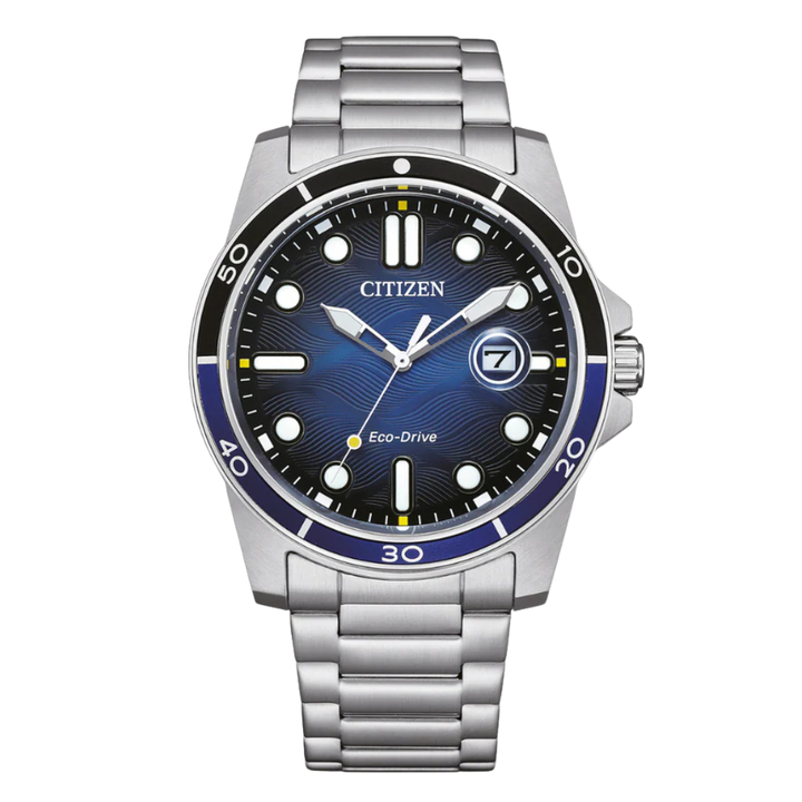 Citizen Silver Stainless Steel Bracelet Blue Analog Solar Watch for Men – AW1810-85L