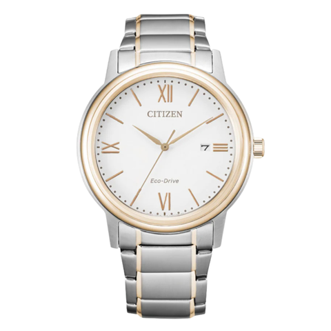 Citizen Two-Tone Stainless Steel Bracelet White Analog Solar Watch for Men – AW1676-86A