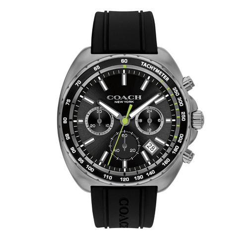 Coach Black Silicone Strap Black Dial Chronograph Quartz Watch for Gents - 14602709