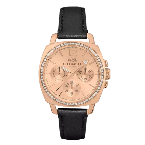 Coach Boyfriend Black Leather Strap Rose Gold Dial Quartz Watch for Ladies - 14502125