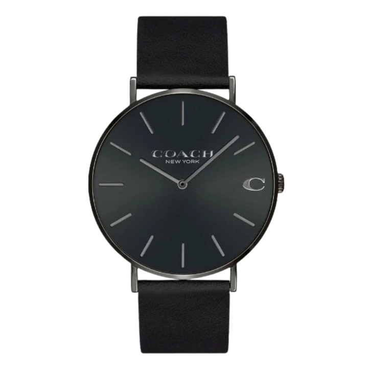 Coach Charles Black Leather Strap Black Dial Quartz Watch for Gents - 14602434