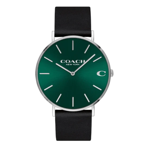 Coach Charles Black Leather Strap Green Dial Quartz Watch for Gents - 14602436