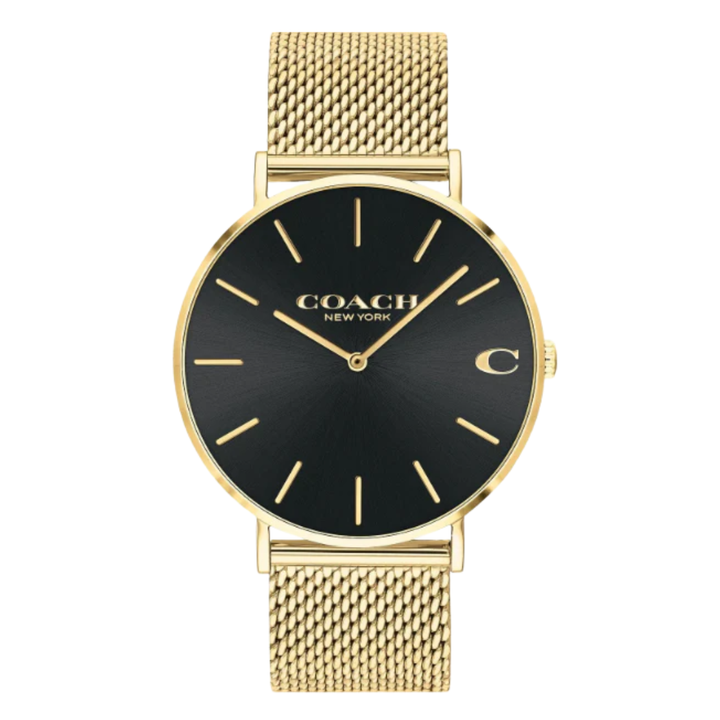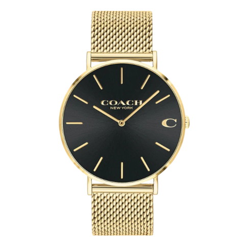 Coach Charles Gold Mesh Bracelet Black Dial Quartz Watch for Gents - 14602440