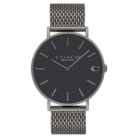Coach Charles Grey Mesh Bracelet Black Dial Quartz Watch for Gents - 14602145