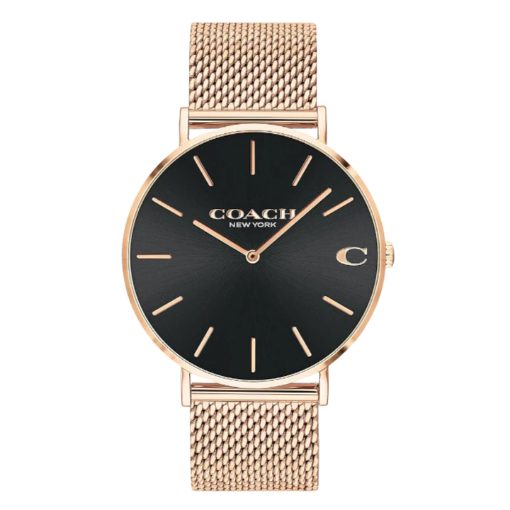 Coach Charles Rose Gold Mesh Bracelet Black Dial Quartz Watch for Gents - 14602552