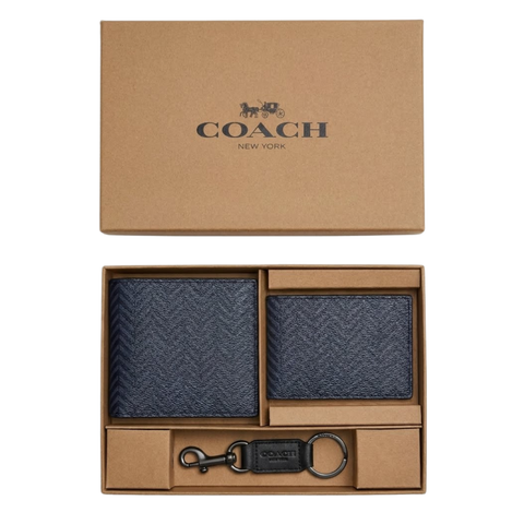 This Coach Compact 3-in-1 Wallet Set features a stylish herringbone pattern.