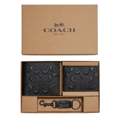 This Coach Compact 3-in-1 Wallet Set is crafted from premium signature embossed leather.