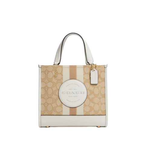 Coach Dempsey Tote 22 White Canvas Leather - C8417