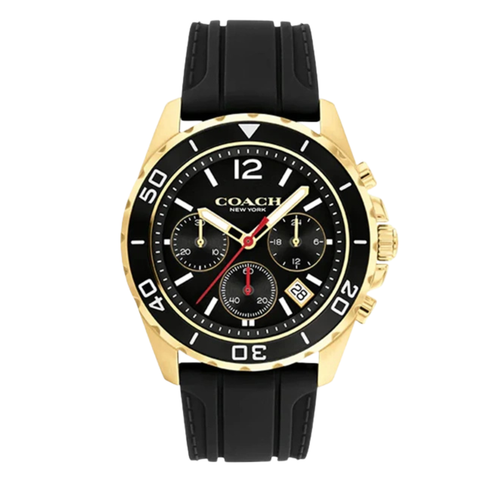 Coach Kent Black Silicone Strap Black Dial Chronograph Quartz Watch for Gents - 14602564