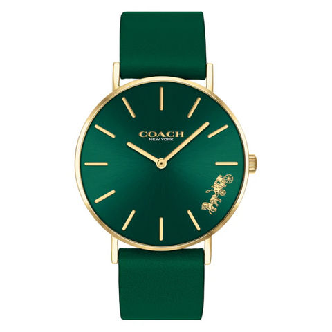 Coach Perry Green Leather Strap Green Dial Quartz Watch for Ladies - 14503383