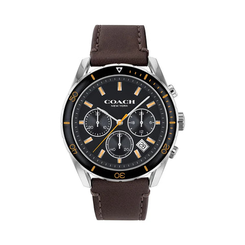 Add to WishlistCoach Preston Brown Leather Strap Black Dial Chronograph Quartz Watch for Gents - 14602514