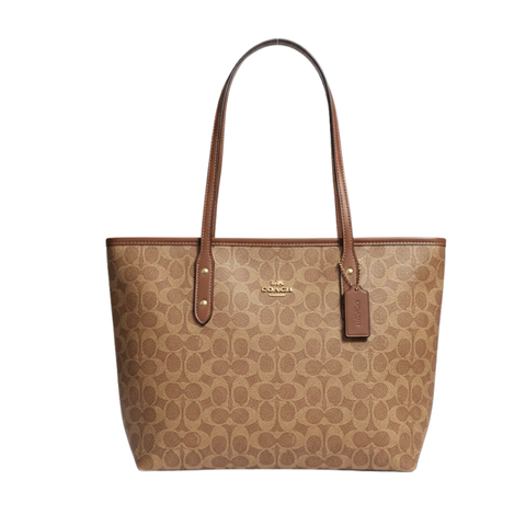 Coach Signature Tote Light Brown Signature Canvas - CCQ28