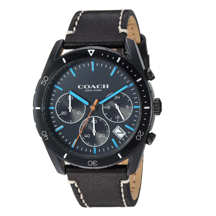 Coach Thompson Black Leather Strap Black Dial Chronograph Quartz Watch for Gents - 14602412