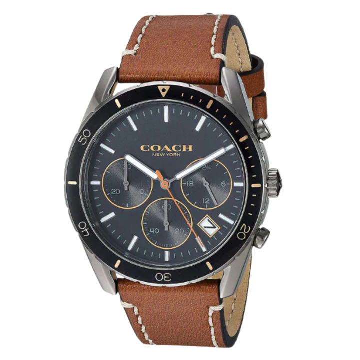 Coach Thompson Brown Leather Strap Black Dial Chronograph Quartz Watch for Gents - 14602410