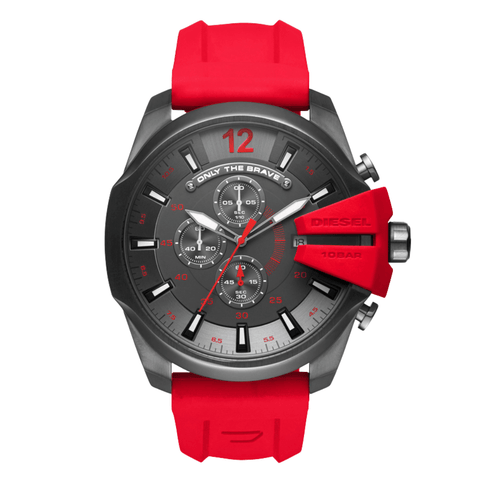 Add to WishlistDiesel Mega Chief Red Silicone Strap Strap Gunmetal Dial Chronograph Quartz Watch for Gents - DZ4427