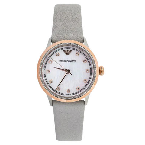 EMPORIO ARMANI Alpha Grey Leather Strap Mother Of Pearl Dial Quartz Watch for Ladies - AR1964