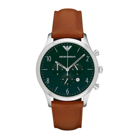 Add to WishlistEMPORIO ARMANI Beta Brown Leather Strap Emerald Green Dial Chronograph Quartz Watch for Gents - EMPORIO ARMANI AR1941