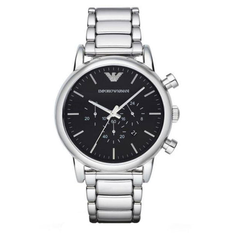 EMPORIO ARMANI Classic Black Dial Silver Stainless Steel Chronograph Watch For Gents - AR1894